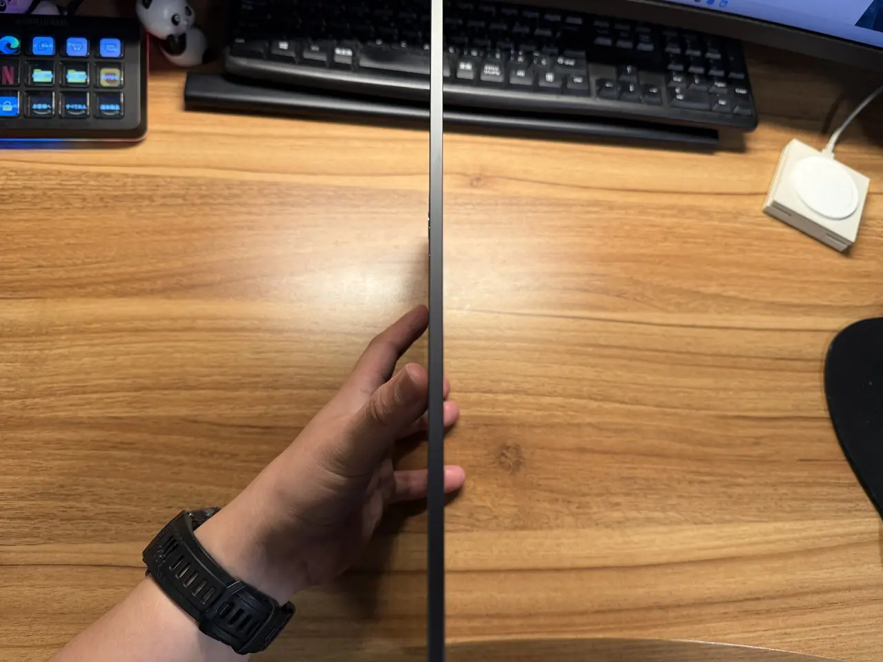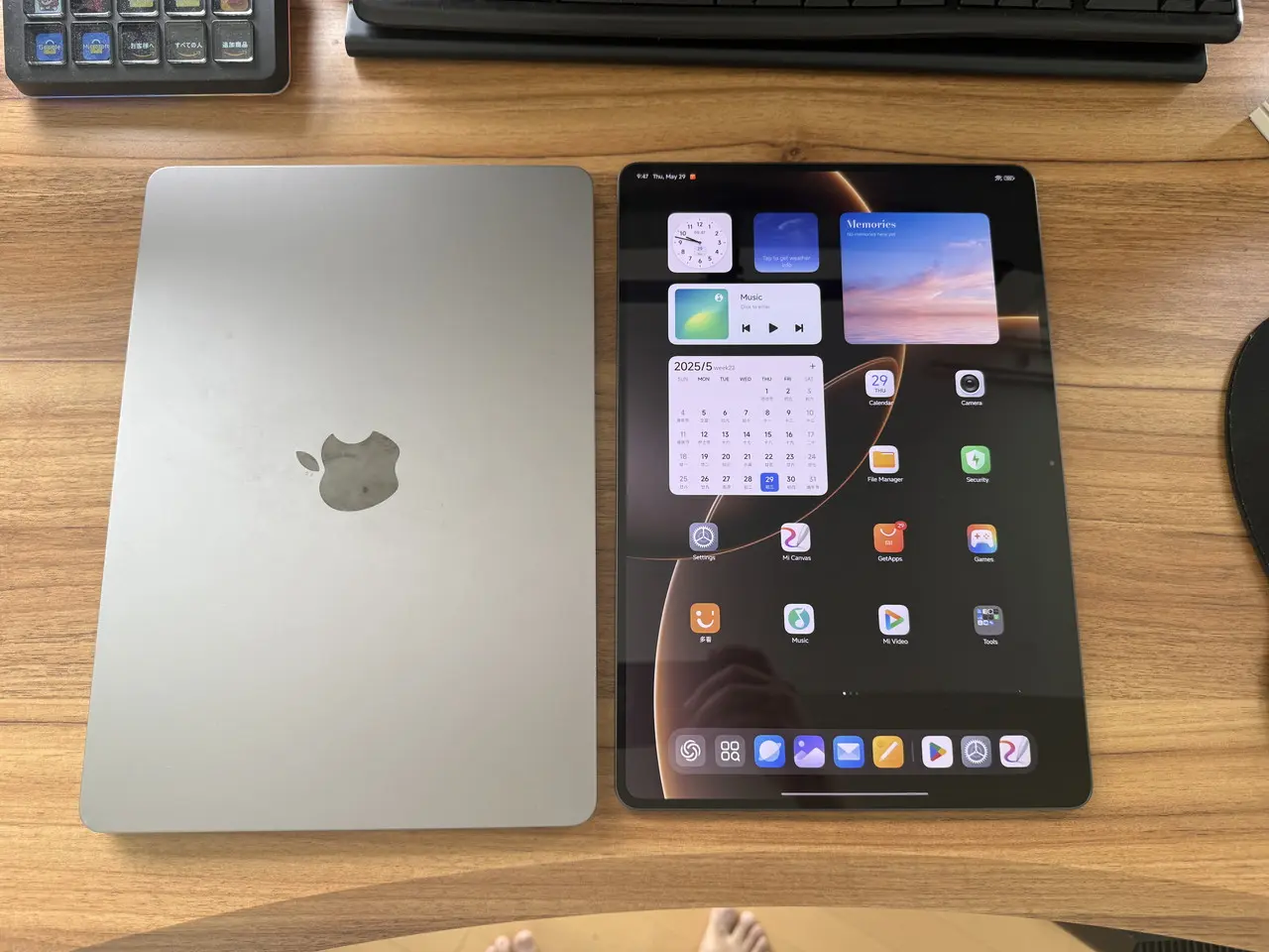 ▼Macbook Air(左)とXiaomi Pad 7 Ultra(右)を並べた様子。縦横のサイズ感は近い。