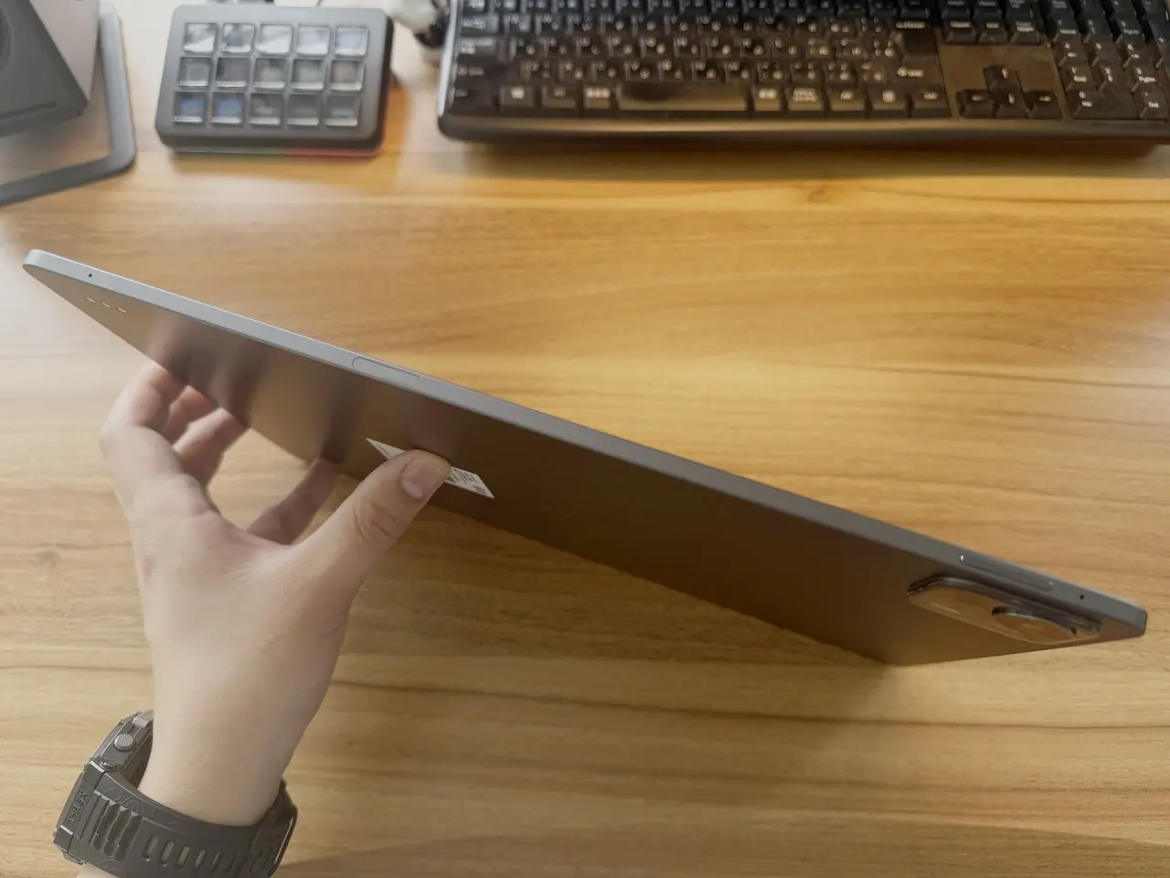 ▼Xiaomi Pad 7 Ultraの外観。14インチディスプレイを搭載した、大柄かつスタイリッシュなデザイン。