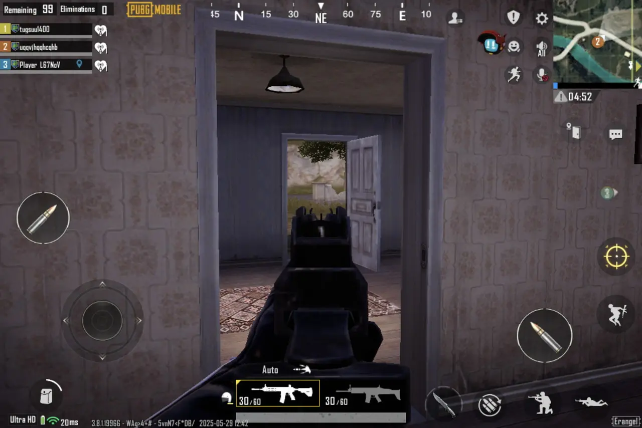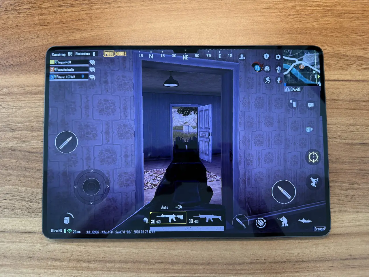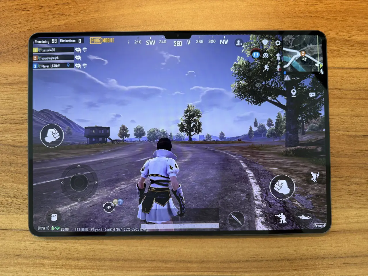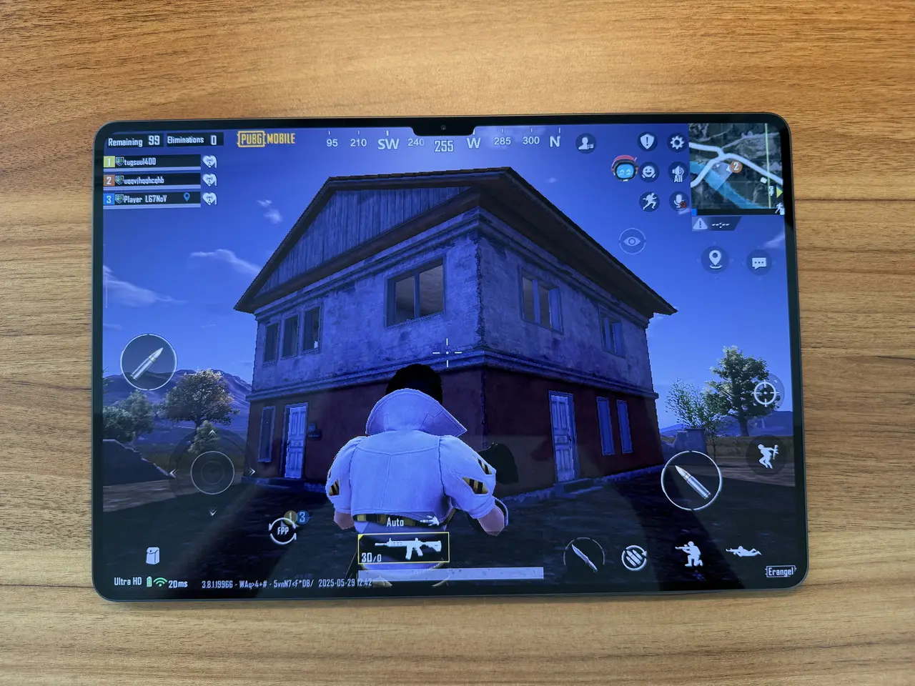 ▼滑らかな描画で鮮明なゲームプレイが可能。大きめの14インチ画面と鮮明な描画のおかげで、遠方も索敵しやすく、仮想コントローラー上のボタン同士のマージンも広いため、余裕をもってタップ操作できる。