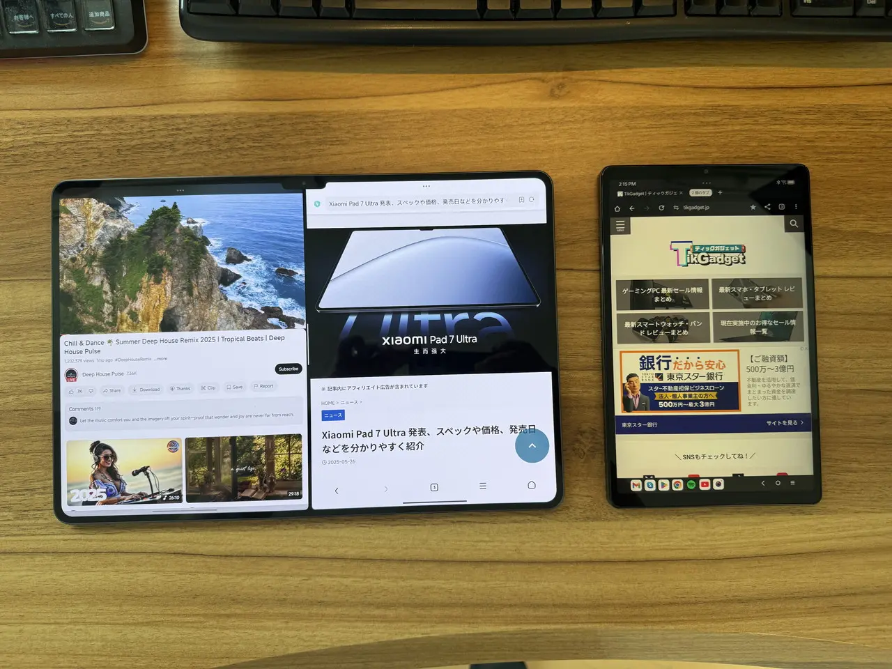 ▼iPhone 16 Pro(左)とXiaomi Pad 7 Ultra(右)を並べた様子。