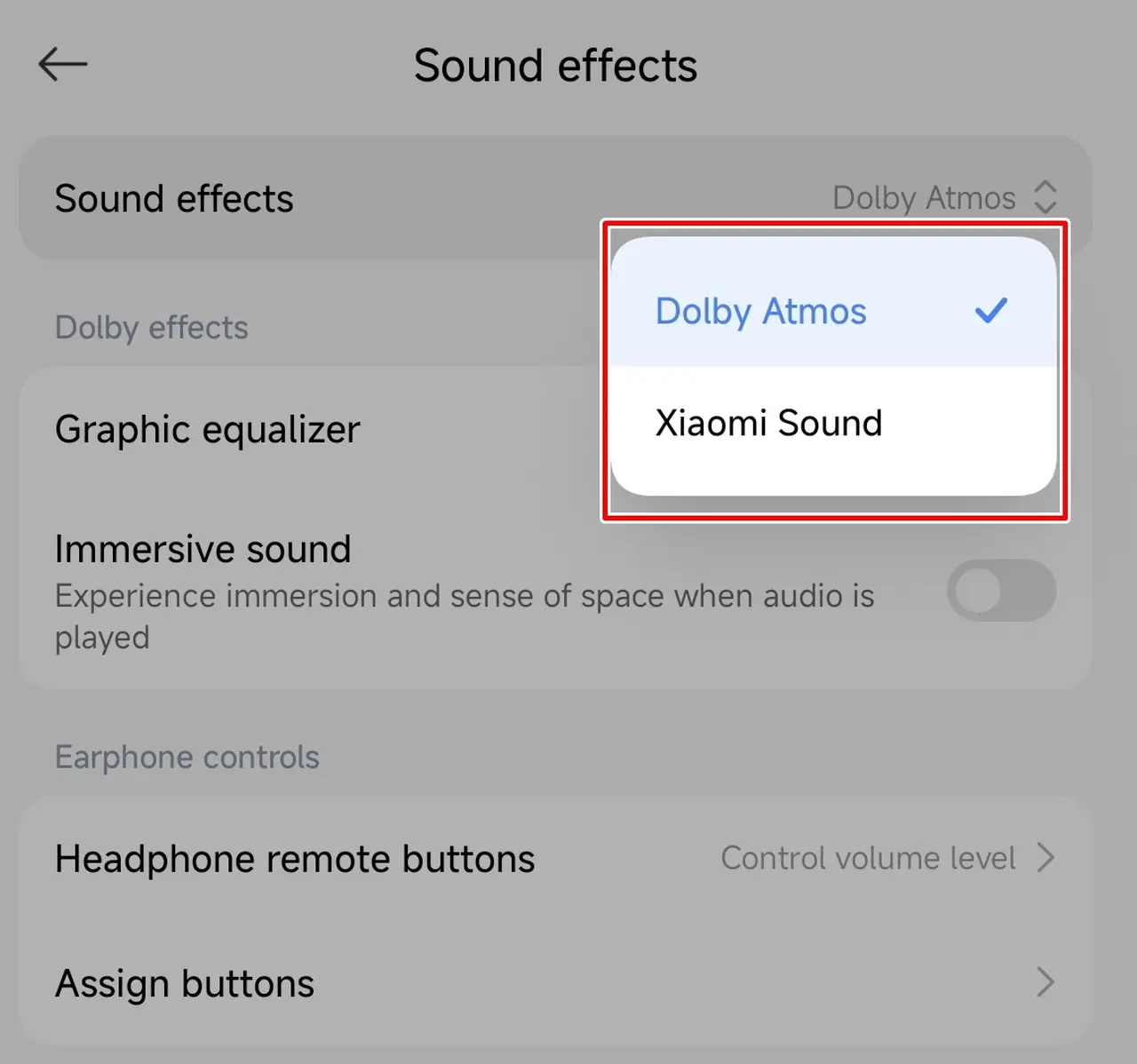 ▼「Dolby Atmos」と「Xiaomi Sound」の2種類からサウンドエフェクトの切り替えも可能。