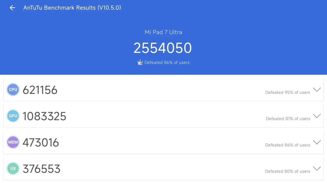 当サイトがこれまでにレビューしたタブレットの中で、最高スコアを記録したモデルは本製品の前機種「Xiaomi Pad 7」の約141万点であったことを踏まえると、従来のタブレットとは比べものにならないほど高いスコアが期待できる。