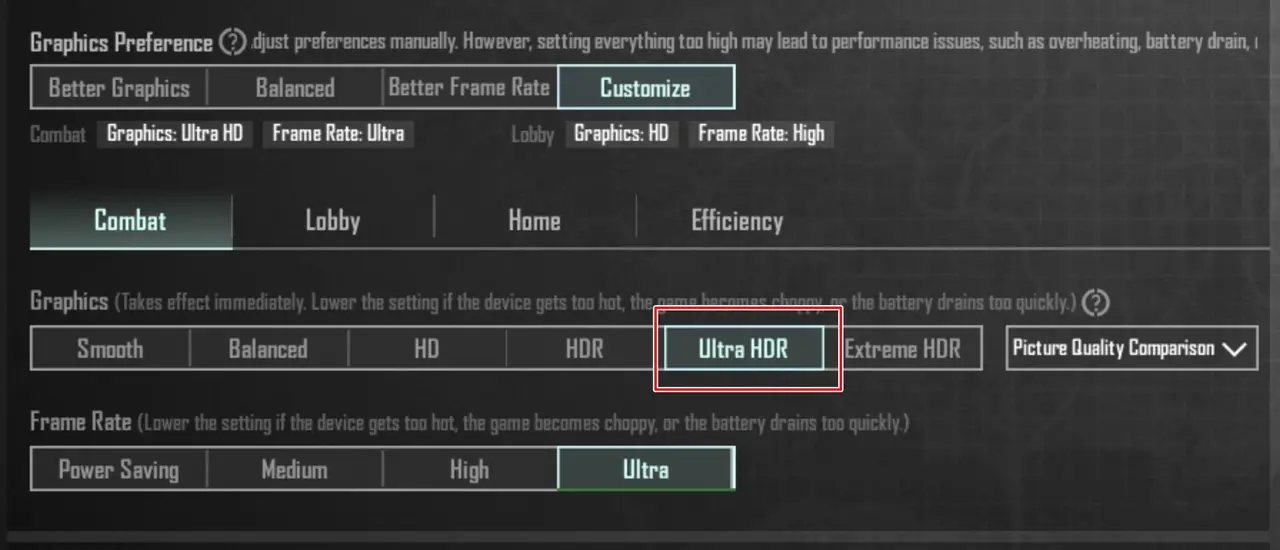 まずグラフィッククオリティに関しては、現時点で最高設定の『ウルトラHDR』を選択できた。