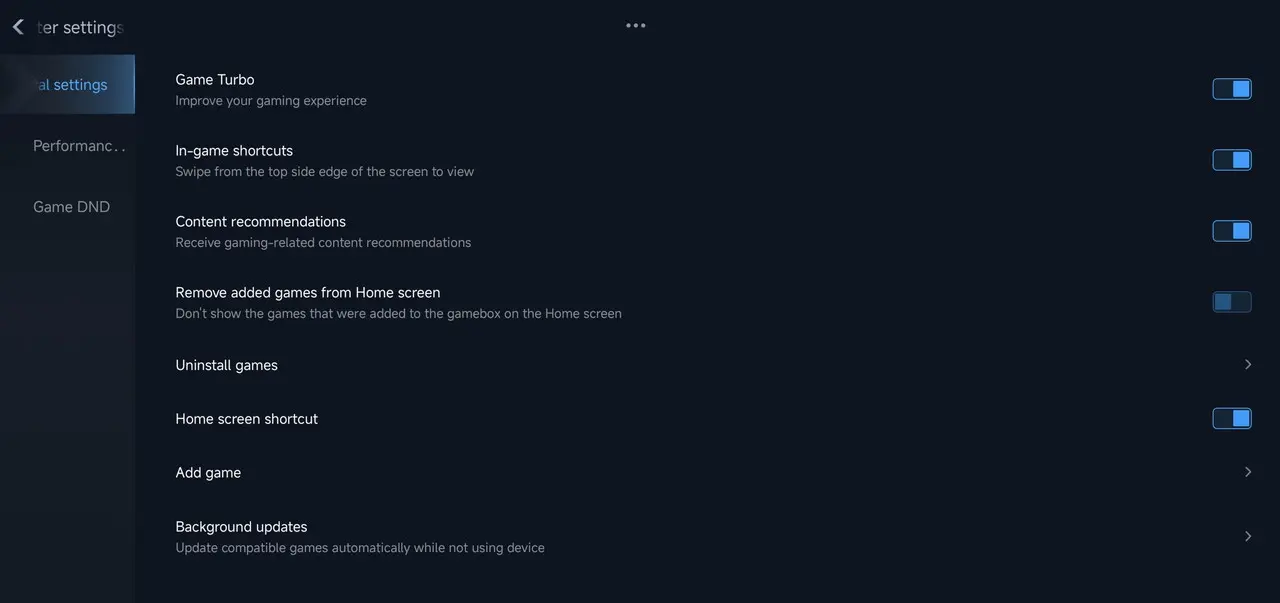 ▼パフォーマンスの切り替えから、画面録画、ボイスチェンジャーなど、ゲーミングに関する様々な便利機能を利用することが可能だ。