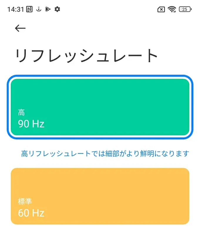 ▼リフレッシュレートは設定アプリより切り替えることが出来る。