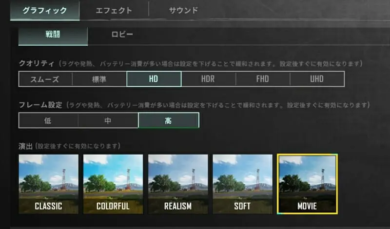 まずグラフィッククオリティに関しては『HD』までを選択することが出来た。