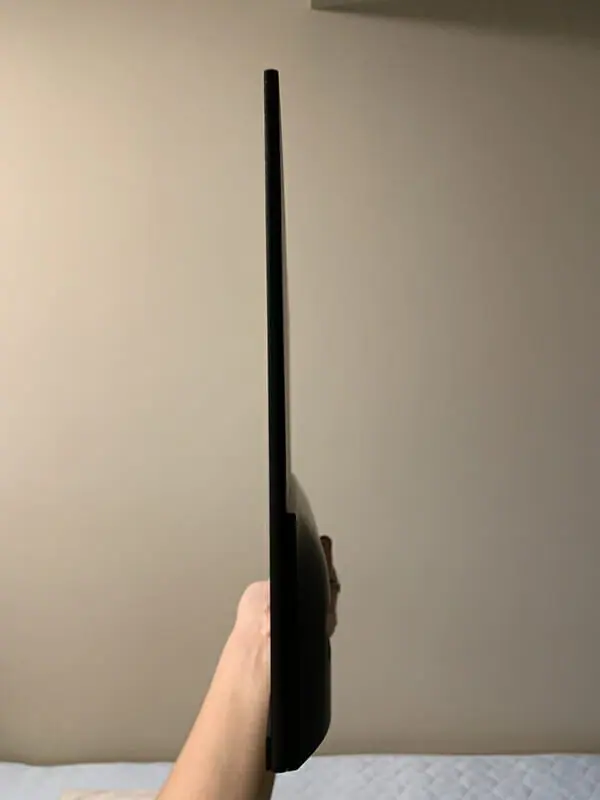 この薄さのおかげで、多数台を連結してデュアルモニター化した場合でも、連結部分が目立ちづらいため、映像に集中することが出来る。