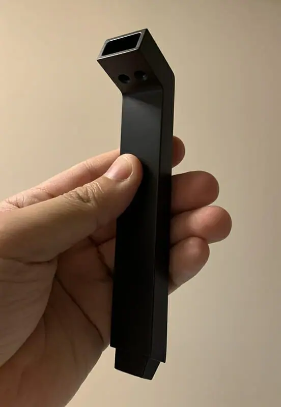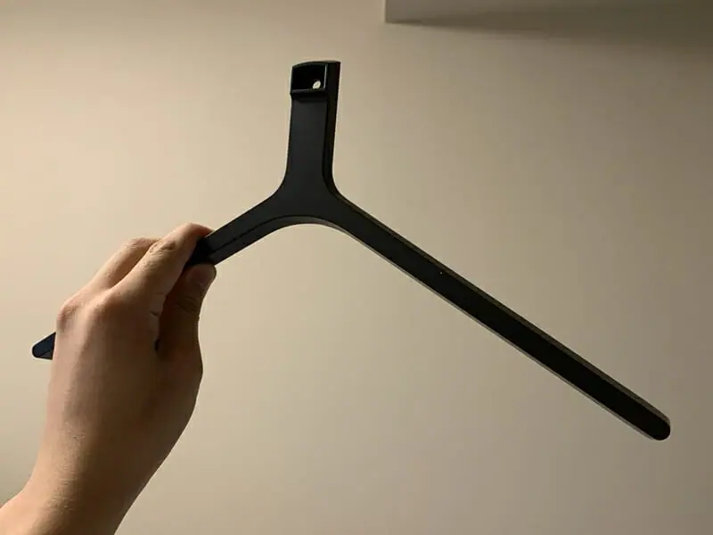 ▼モニターを設置するためのスタンド。ハンガーのような形状で安定感がある。