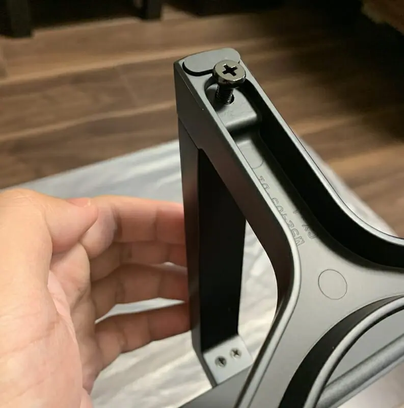 ▼続いて、スタンドアームのさらに下部へ、スタンドを同じくビスで取り付ける。