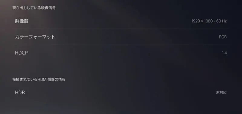 ▼映像出力情報(PS5)