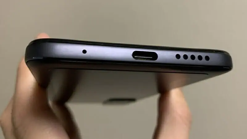▼本体下部の様子。スピーカーとType-Cポートが用意。33W急速充電に対応している。