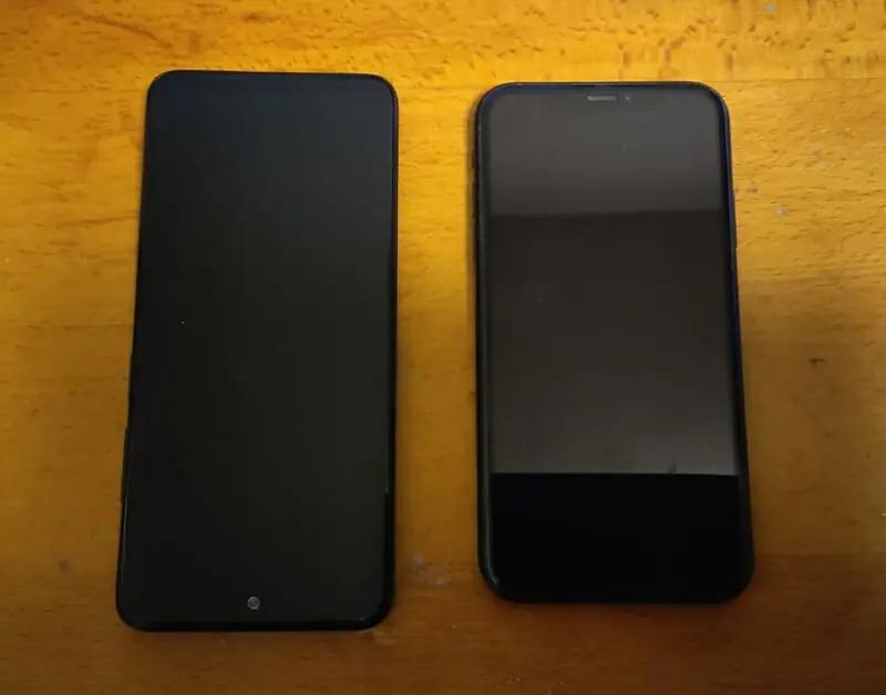 ▼iPhone XR(画像右)と比較した様子。大きさ的には同じくらい。