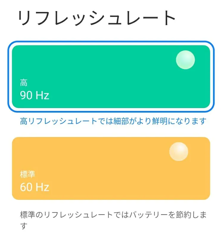 ▼リフレッシュレートは設定アプリより切り替えることが出来る。