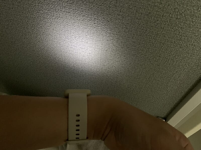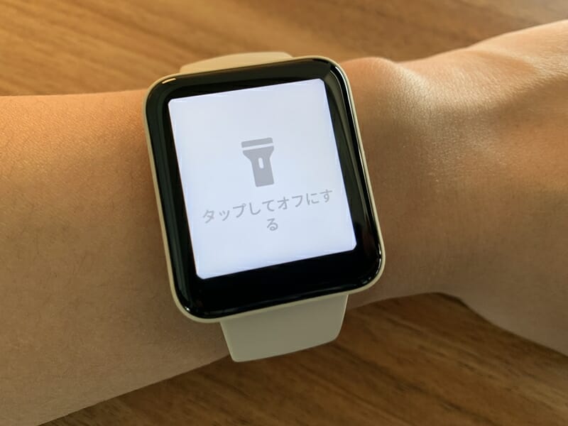 また懐中電灯機能も搭載しており、ディスプレイの発光で狭い範囲を照らすこともできる。