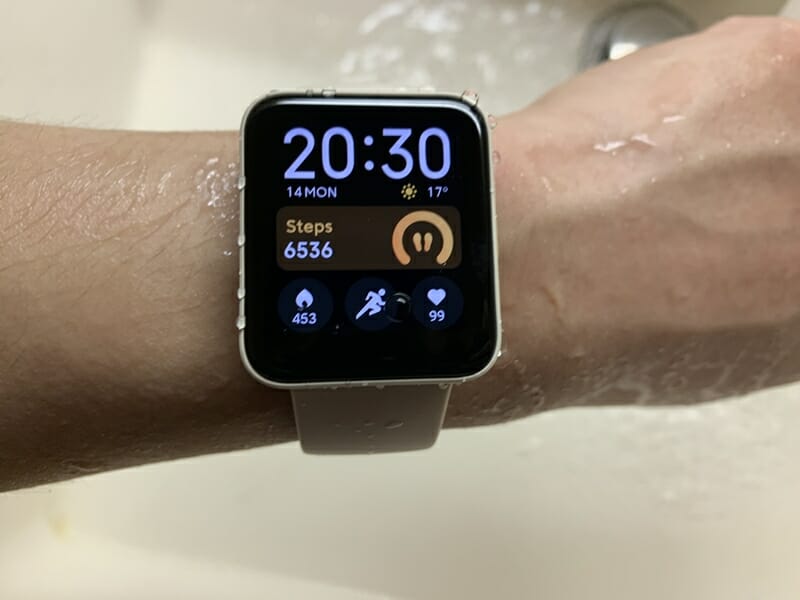 スマートウォッチ自体は5ATMの防水規格に対応しており、シャワー中やプールでの水泳中に装着し続けることもできる。