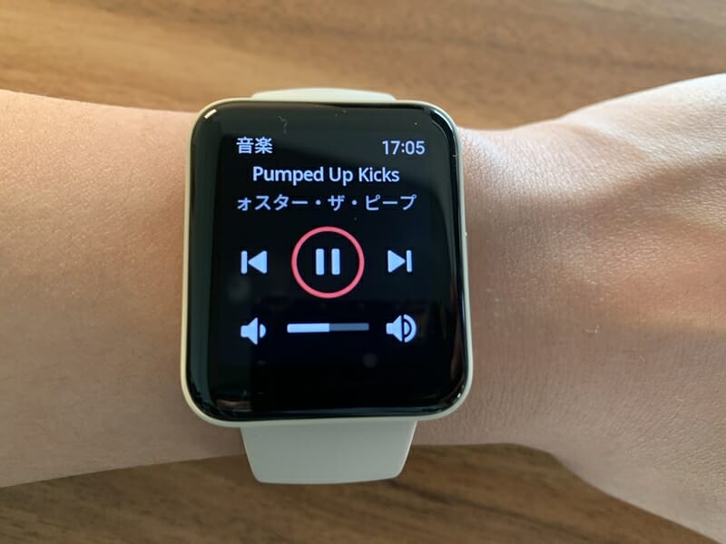 ▼スマホと連動して、音楽再生機能をスマートウォッチ上からも利用することが出来る。