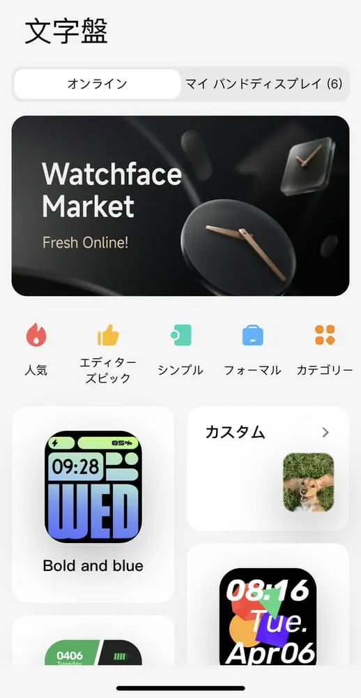 アプリから無料のテーマをインストールすることで、スマートウォッチのホーム画面(ウォッチフェイス)のデザインを自由に変更することも可能だ。