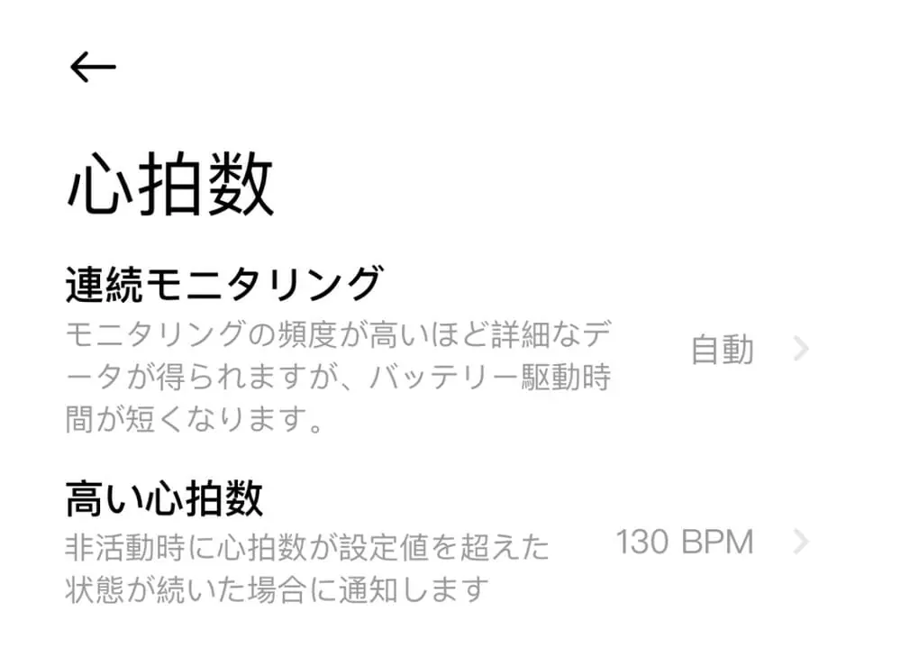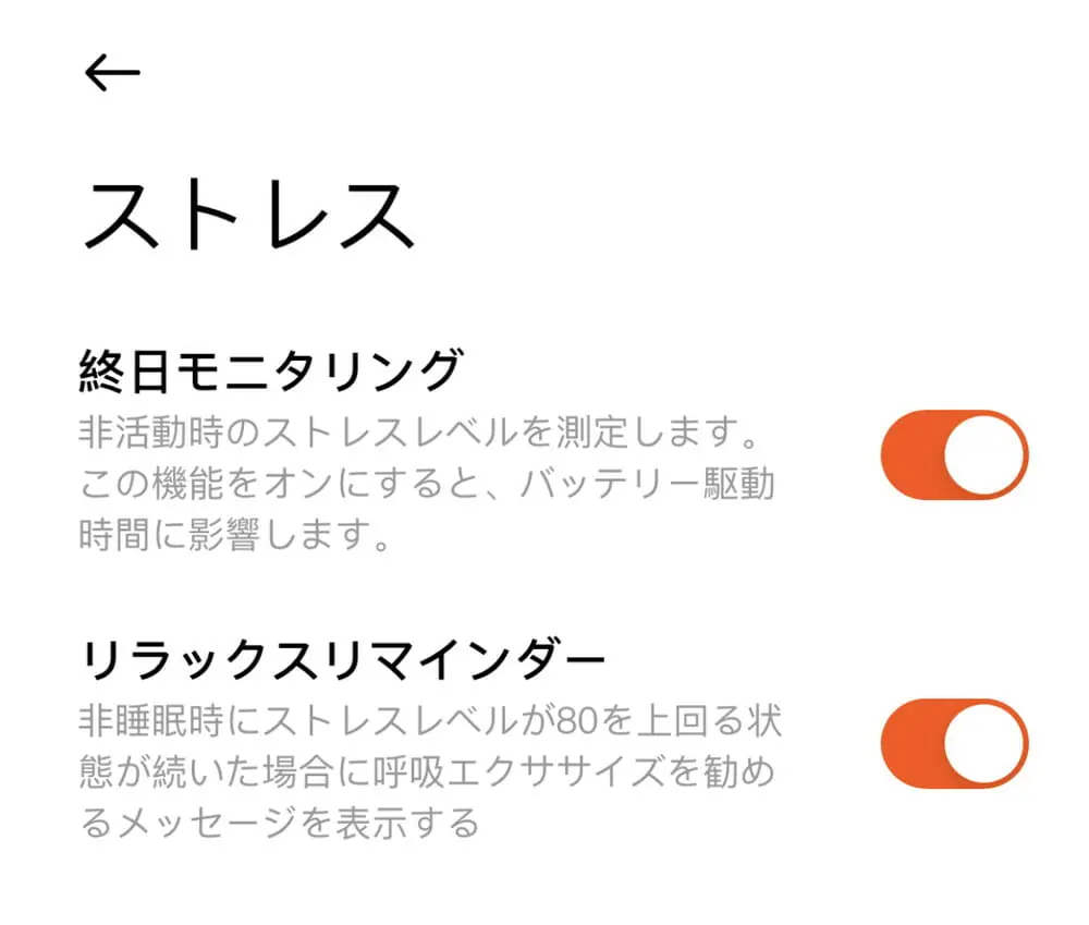 本製品には健康モニタリング機能が備わっており、ストレス・睡眠・心拍数・血中酸素飽和濃度などの数値を24時間監視(トラッキング)し、データとして可視化・保存しておくことが出来る。