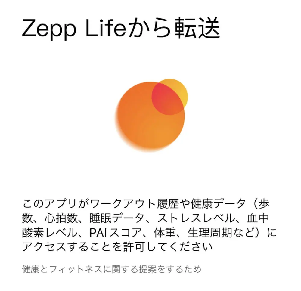 アプリでは「Zepp Life」や「ヘルスケア」など、サードパーティから過去のデータを転送(共有)することも可能だ。