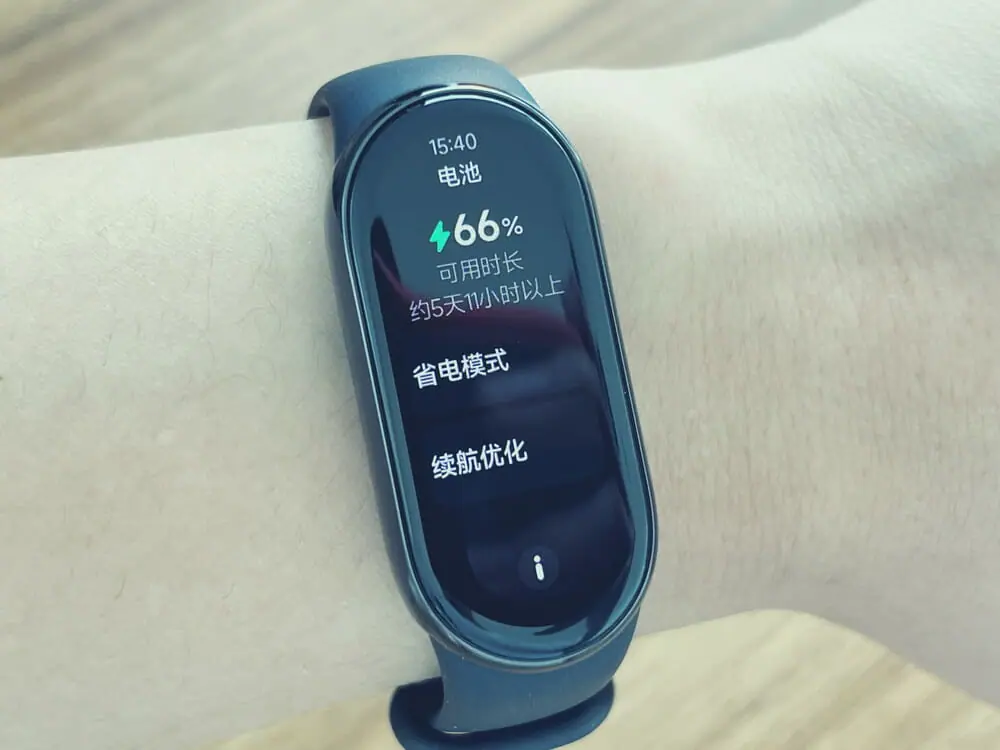 Mi Band 8のバッテリー容量は190mAh、寿命は従来モデルと比べても向上しており、Mi Band 7の14日間に対して、Mi Band 8では16日間の連続使用に対応している。ただしこれは常時表示(AOD)を無効にした場合であり、AODを有効にすると、1充電でのバッテリー寿命は約6日間に減少するとのこと。