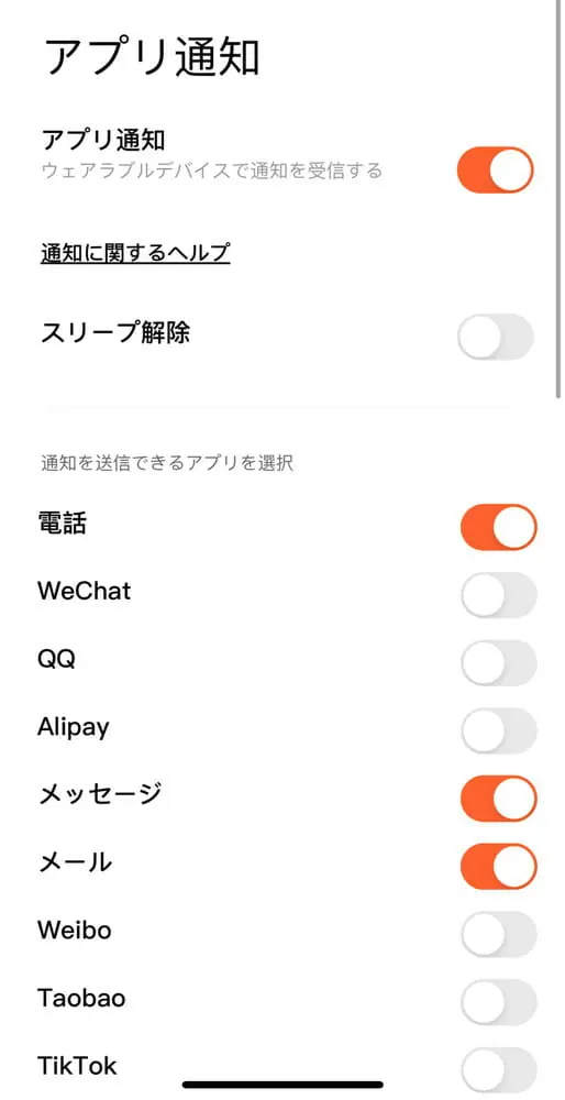 これはスマホ上に通知された着信、メッセージ受信、その他SNSアプリ等のプッシュ通知を、スマートバンド上でも確認できる機能だ。