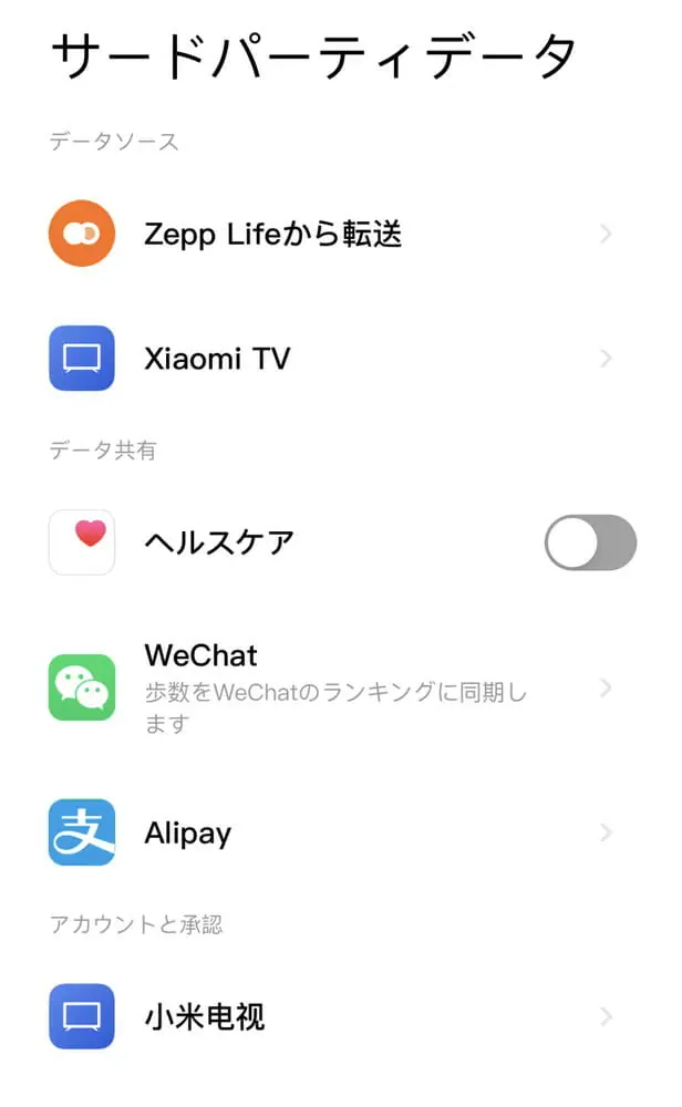 アプリでは「Zepp Life」や「ヘルスケア」など、サードパーティから過去のデータを転送(共有)することも可能だ。
