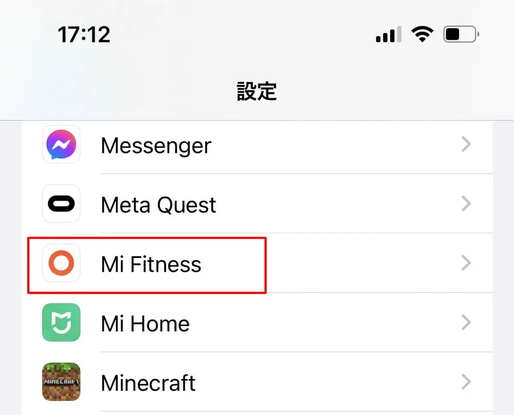 まずスマホの設定アプリを開き、アプリ一覧から「Mi Fitness」を選択。
