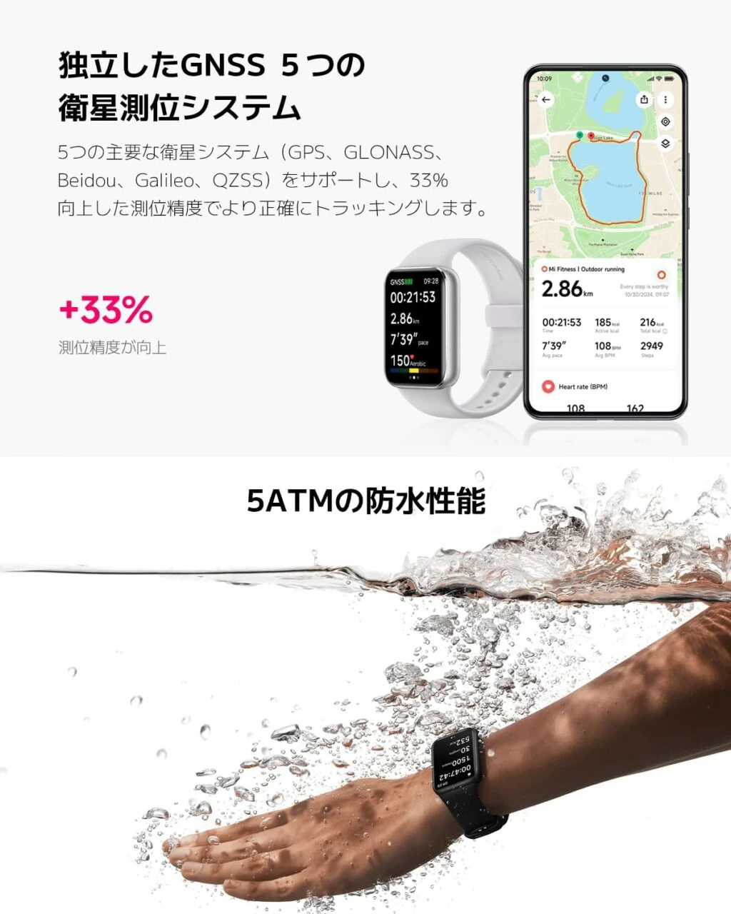 | 防水規格 | 5ATM(50m防水、プールや浅瀬の水上活動に対応) |