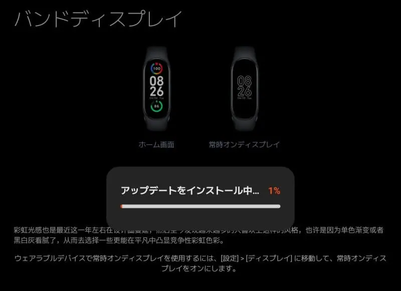Xiaomi スマートバンド 6とXiaomi スマートバンド 7の最大の違いは『常時表示への対応』だ。