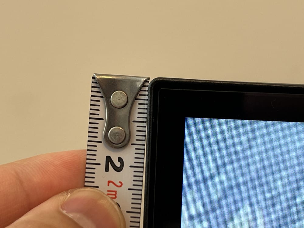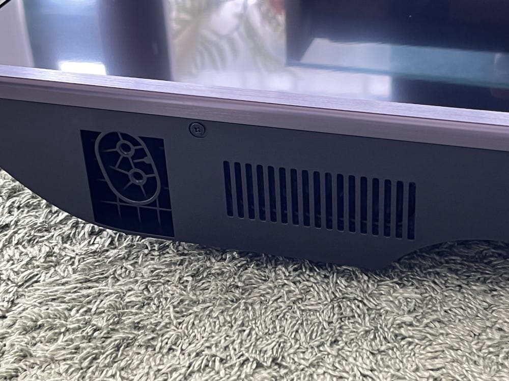 本製品のベゼル幅は約8mmほどと非常に薄い。そのおかげで、ディスプレイサイズに対して筐体サイズが最小限に抑えられているほか、映像が空間に溶け込んでいるかのような、没入感の高さを味わえる。