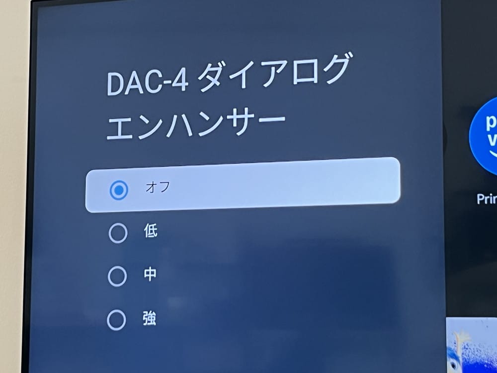 ▼「DAC-4 ダイアログエンハンサー」をオンにすることで、背景音やBGMに埋もれがちな会話音声を強調することができる。