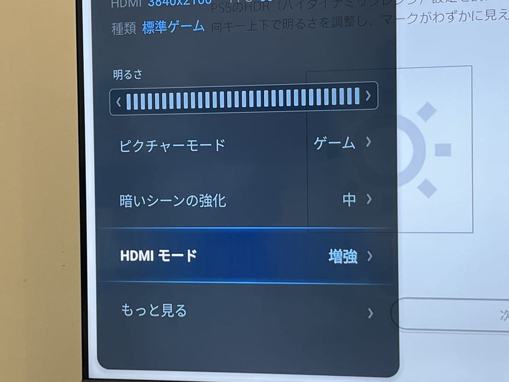 ゲームプレイ中は、先述した設定画面のピクチャーモードの欄に「ゲーム」の項目が追加される。