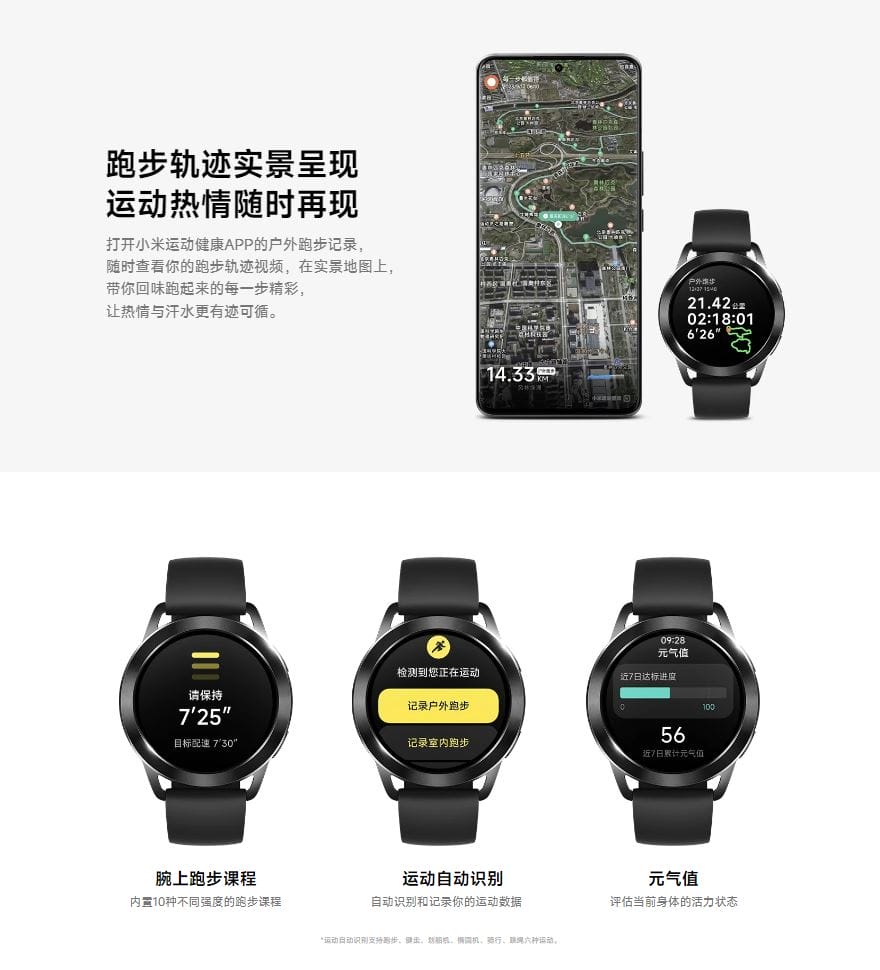 そして150種類以上のスポーツモードをサポートしているほか、GPSも内蔵。スマートランニングモード、ランニングレッスン等の機能も備えている。