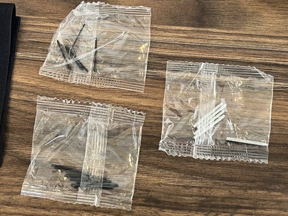 ペンケースには2本のスタイラスペンに加えて、Bluetoothレシーバー(ACK05接続用)、標準替え芯×6、フェルト替え芯×2、芯抜きなどが収まっている。