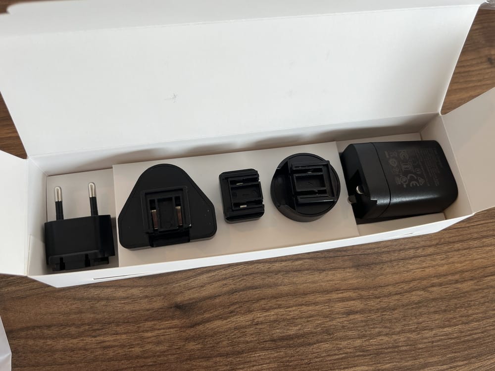 ▼海外でも利用できるように、複数種類の電源アダプタが付属している。