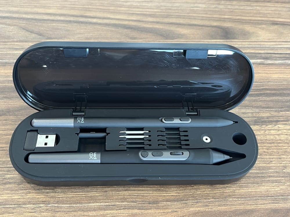 付属品も充実しており、特にスタイラスペンが2種類付属しているおかげで、細かな描き分けができる点が嬉しい。替え芯も豊富に用意されているため、長期にわたり使い続けられる製品となっている。