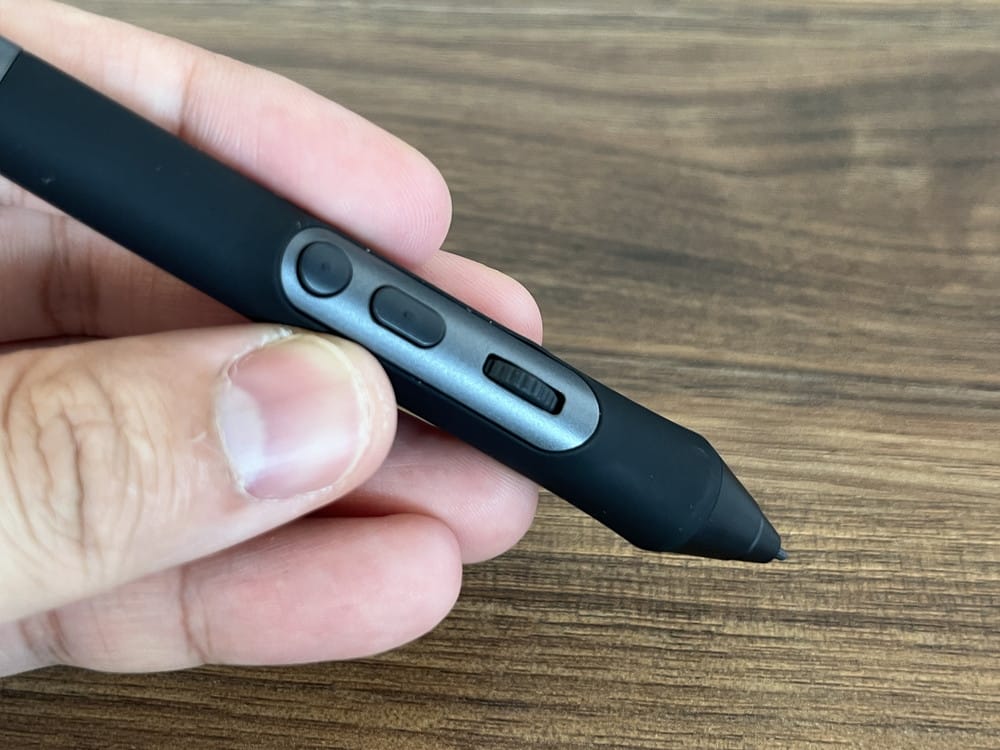 X3 Proローラースタイラスペンは、2つのショートカットキーと1つのローラーを搭載した太めのペンだ。