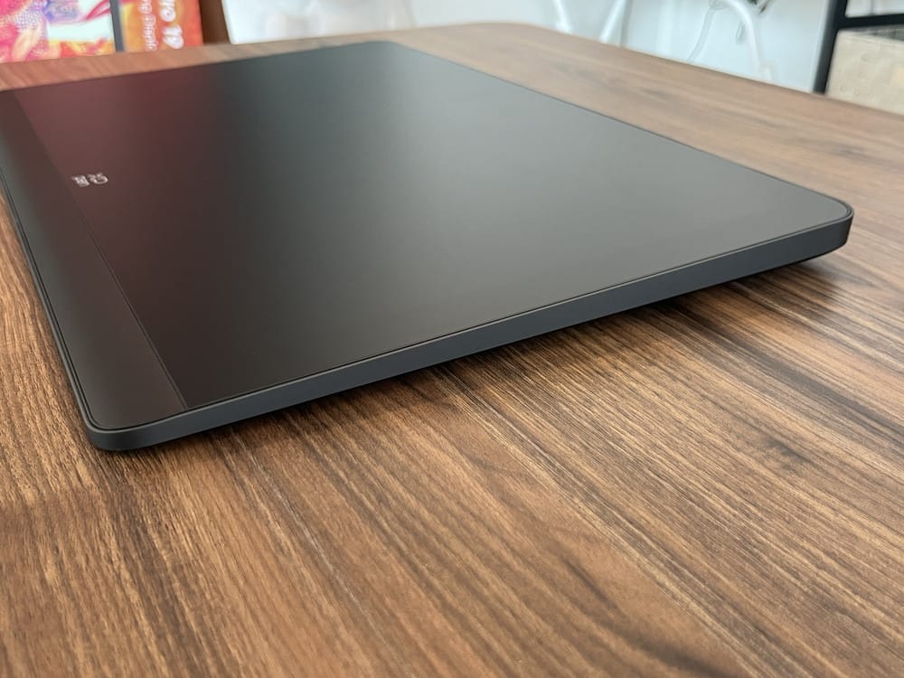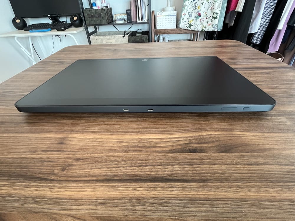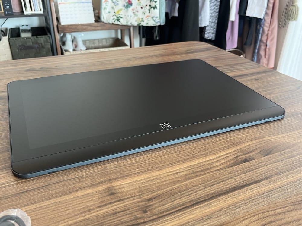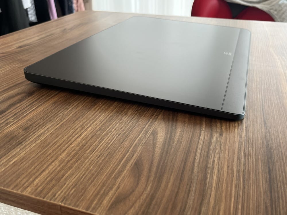 460×306.6×21.54mmの大きめな筐体に、409×230mmの広い作業エリアを備えており、伸び伸びと描くことができる。本体重量は約2.23kgと筐体サイズに対して比較的軽めであり、外出先への持ち運びこそ向かないものの、自宅内で作業場所を移動する際にも支障にならないサイズ感だ。