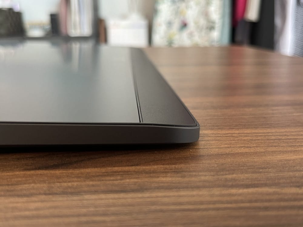 ▼最も厚い部分で約2cmほどと薄型デザインとなっており、全体的にスタイリッシュな印象を受ける。