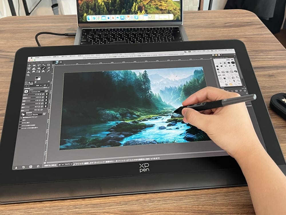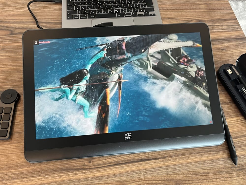 細かな文字まで鮮明に描画されるため、液タブとしてだけでなく、PCのサブモニターとしても十分に活用できるレベルだ。