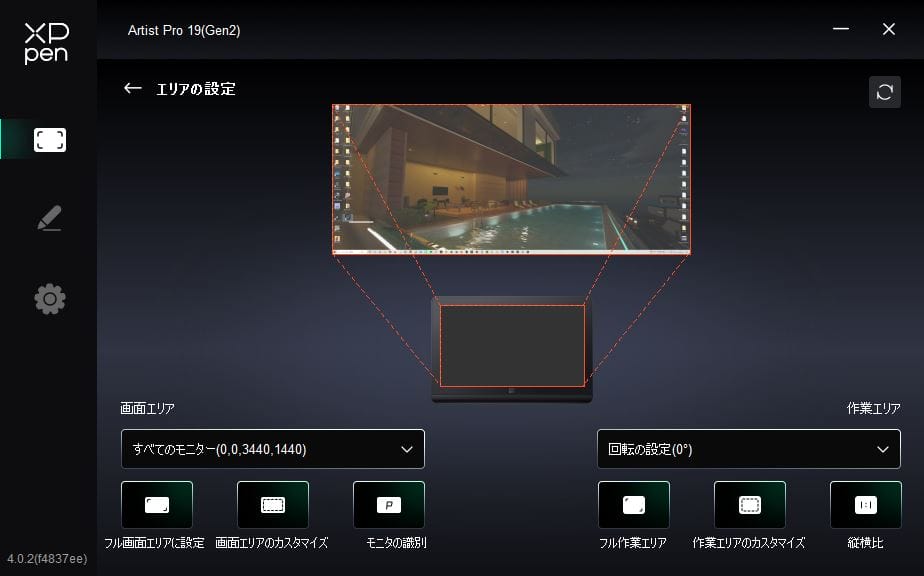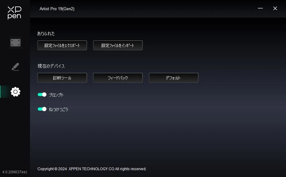 XPPen公式サイトで配布されている無料ソフトウェアを利用することで、液タブ本体やワイヤレスショートカットリモート、スタイラスペンの機能を自由に調節・カスタイマイズすることができる。