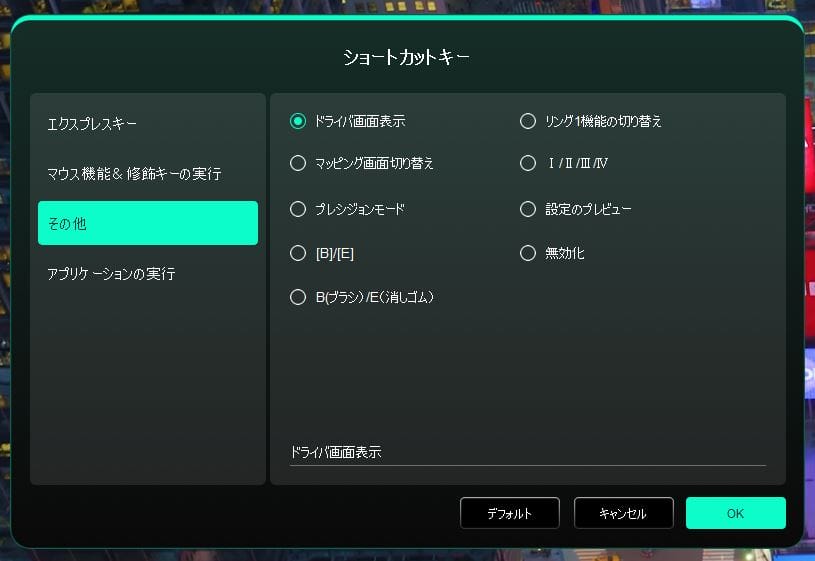 ▼ワイヤレスショートカットリモートに搭載された複数のキーに関してもそれぞれ好みの機能を割り当てられる。