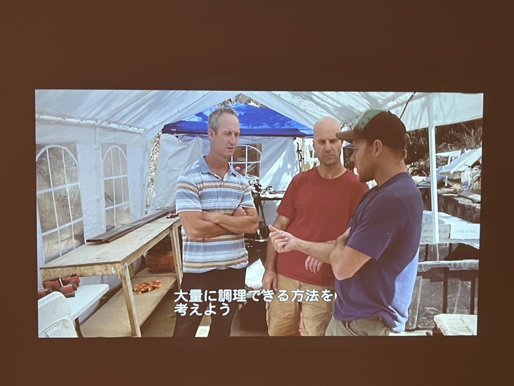 ▼リモコンを利用してプロジェクターを遠隔操作できる。