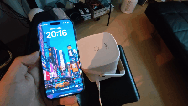 ワイヤレスミラーリングの場合、通信環境によっては多少の遅延があるものの、スマホ画面の映像をプロジェクターから明瞭に投影することができていた。当然、画面回転にも対応している。スマホ上で動画や音楽を再生した場合、サウンドはプロジェクターの内蔵スピーカーから出力される。
