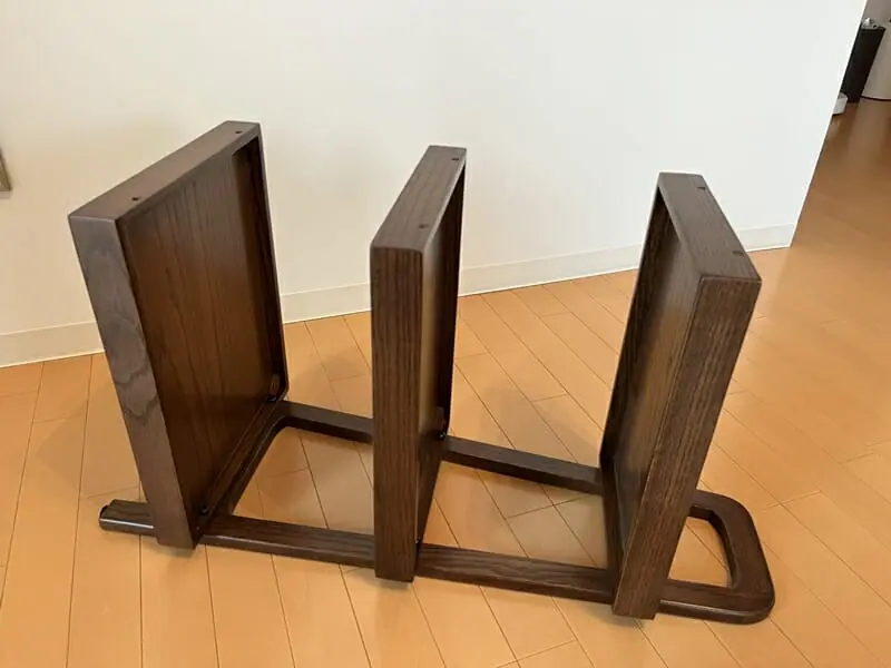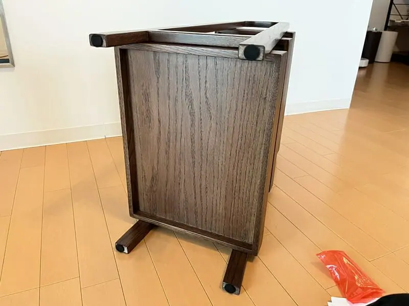 脚の底に始めから緩衝材が付いており、フローリングにキズが付かないようになっている。縁に仕切りがあり物が落ちづらい点など、全体的にユーザビリティに優れた設計がなされている。