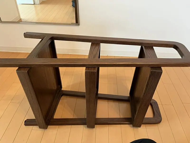 ただし、オークの暗い色合いがちょうど黒いボルトとワッシャーを隠してくれている。
