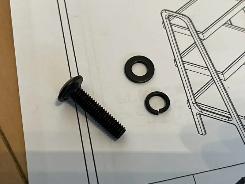 ボルト1種類、スプリングワッシャー1種類、フラットワッシャー1種類を付属する六角レンチで締めていくだけなので、この手の組み立てが苦手な方でも心配する必要は無い。