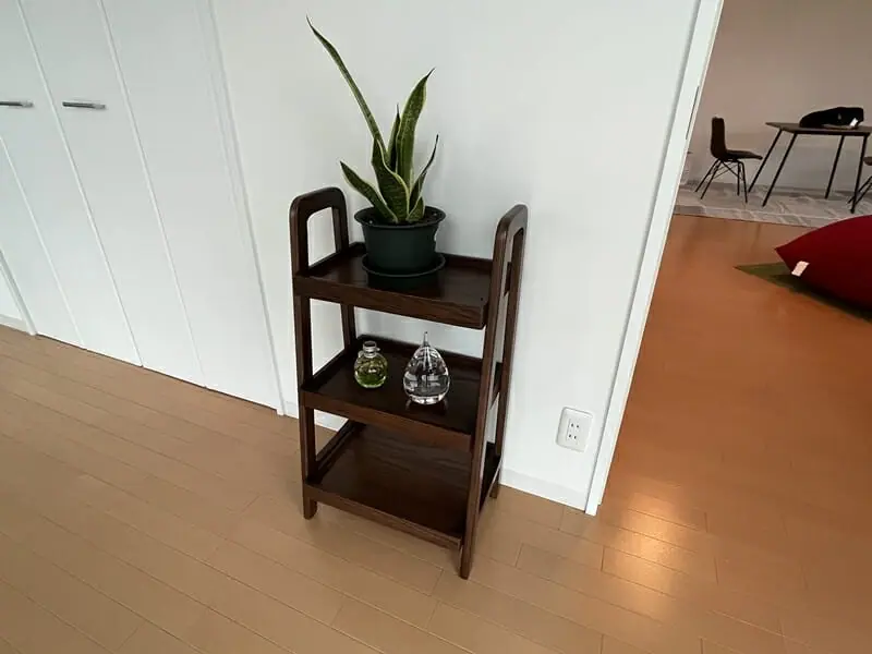 ▼実際に物を置いて使用している様子。小物や観葉植物などを置くのにも丁度よいサイズ感だ。