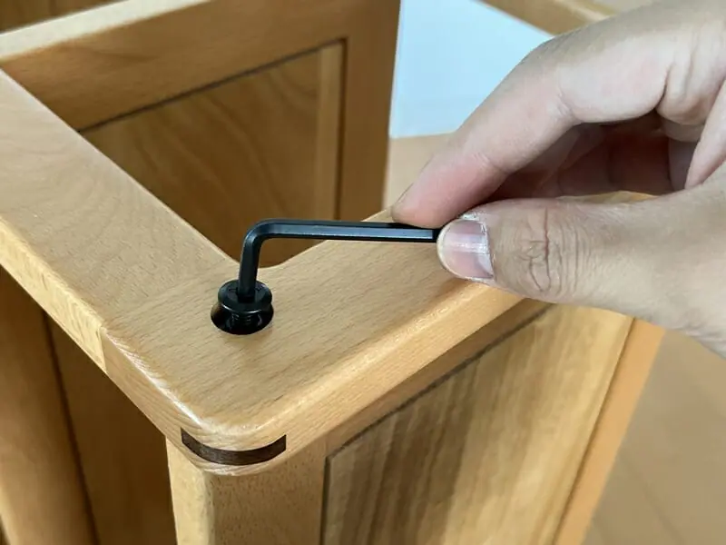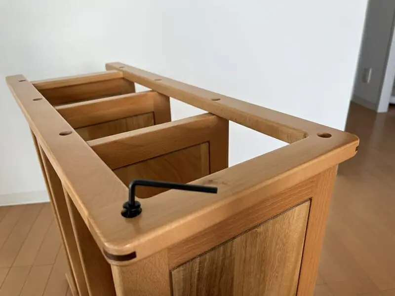 ▼六角レンチを締める場合にも、そこまで力は必要ない。逆に締めすぎると木がミシミシと音を立てるため、ほどほどにしておこう。