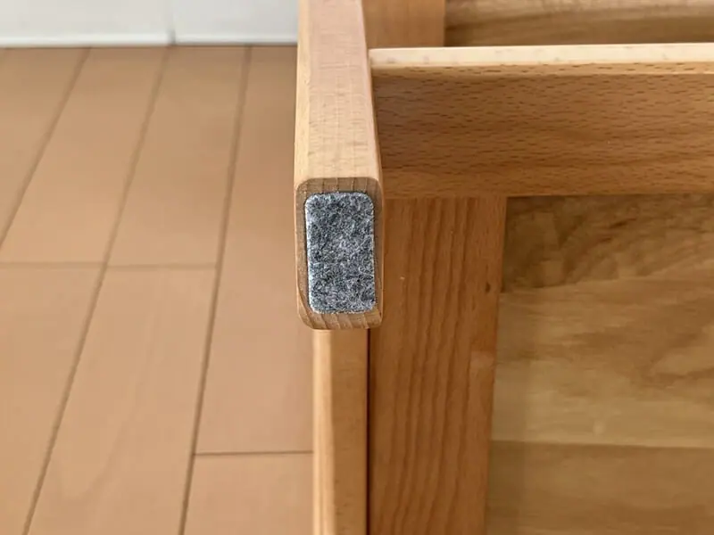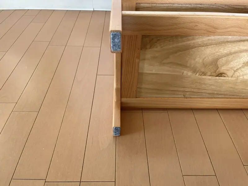 脚の底に始めから緩衝材が付いており、フローリングにキズが付かないようになっている。縁に丸まっておりケガをしづらくなっているなど、全体的にユーザーに優しい設計がなされている。